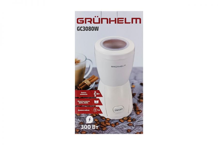 Хотите наслаждаться свежемолотым кофе каждое утро? Предлагаем купить кофемолку Grunhelm GC-3080W — производительное устройство для быстрого измельчения кофейных зерен, специй и сахара. Кофемолка Grunhelm GC-3080W оснащена двигателем на 300 Вт и долговечными стальными ножами. ! Цена на Grunhelm GC-3080W в нашем магазине — самая выгодная за оригинальную технику Грюнхельм.
