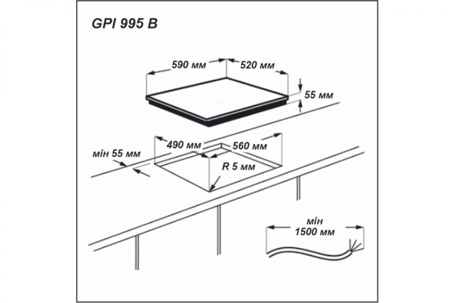 Габариты встраивания (ВхШхГ): 9.6 × 560 × 490 мм