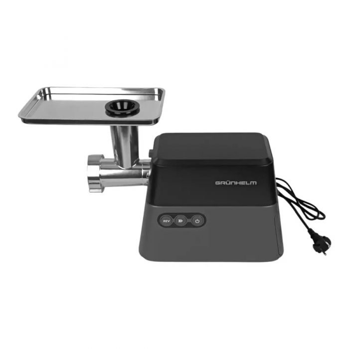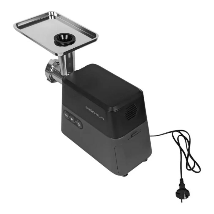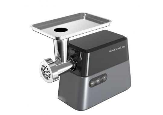 - Надійність: Металевий лоток та міцний корпус забезпечують тривалий термін експлуатації м'ясорубки Grunhelm.