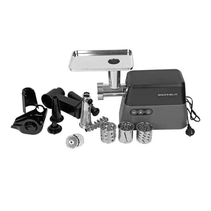 Вибираючи електричну м'ясорубку Грюнхельм, ви отримуєте пристрій "все в одному". Модель AMG2663APSJ — це не просто подрібнювач м'яса, а справжній кухонний комбайн. Ціна Grunhelm AMG2663APSJ повністю виправдана її комплектацією та довговічністю двигуна з мідною обмоткою.